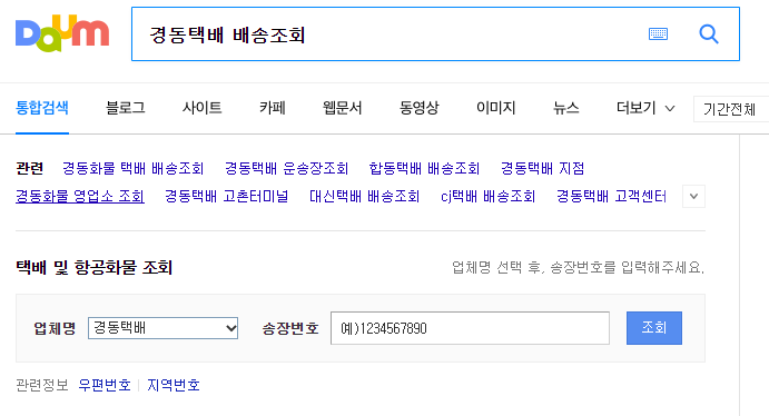 ▶ 경동택배 배송조회 다음, 네이버 포털 검색 방법