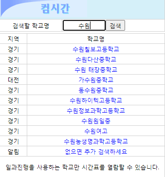 컴시간 알리미는 중학교, 고등학교별로 시간표를 간단하게 보여주는 기능이