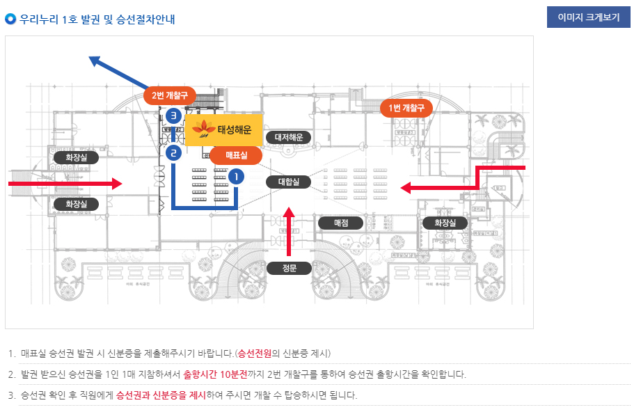 또한 승선권 신분증을 제시 후 탑승이네요.