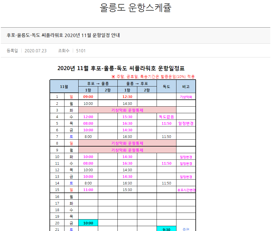 안녕하세요 오늘은 울릉도 배편시간표, 요금에 대해서 알아보도록 하겠습니다.