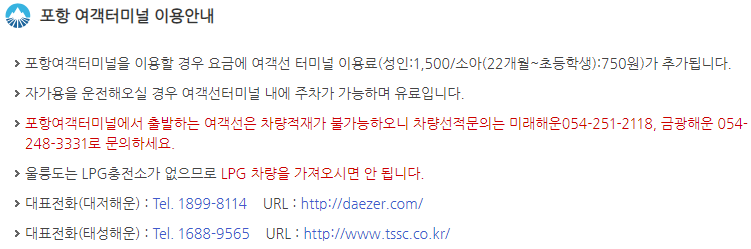 1. 동해 묵호항에서 울릉도 배편시간표, 요금