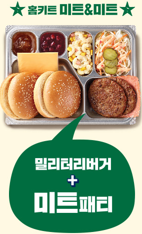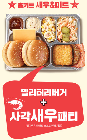 ※ 밀리터리버거 구매 시 미트 패티, 사각 새우 패티 추가 제공한다고 해요.