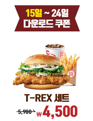 쿠폰 쓰시면 좋을 것 같아요. 행사기간은 새우버거 세트, t-rex세트 11월 15일부터 ~11월 24일 까지고요.