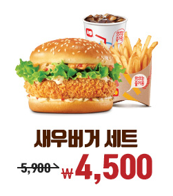 가격은 티렉스, 새우버거 세트 똑같이 4,500원 이랍니다.