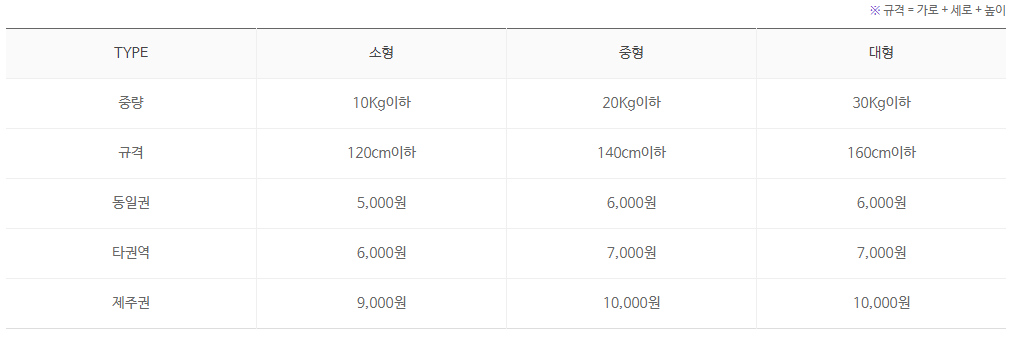서비스입니다. 박스규겨 및 무게에 따라 배송 요금이 다르며 미리 예약하는 방식입니다.