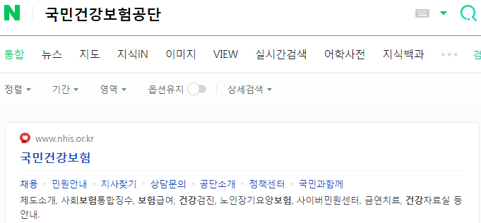 검색창에서 국민건강보험공단 검색하시면 홈페이지가 나옵니다.