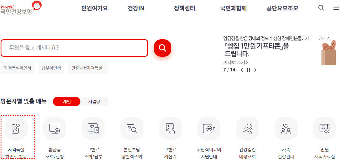 건강보험 로그인화면 개인, 사업장
