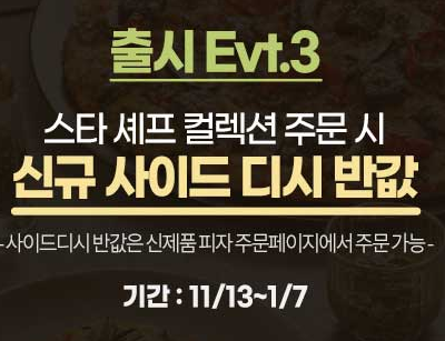 - 스타 셰프 컬렉션 주문 시 사이드 디시 50% 할인 행사입니다.