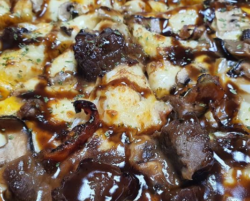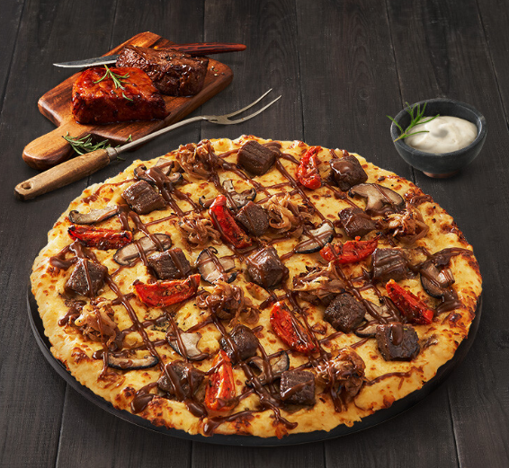 중요한 건 스테이크인데요 큼직한 게 소스 맛과 잘 어울린 듯, 피자와 스테이크 조합이