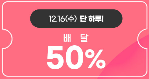 12월 16일 단 하루 동안 배달 50% 할인한다고 합니다.