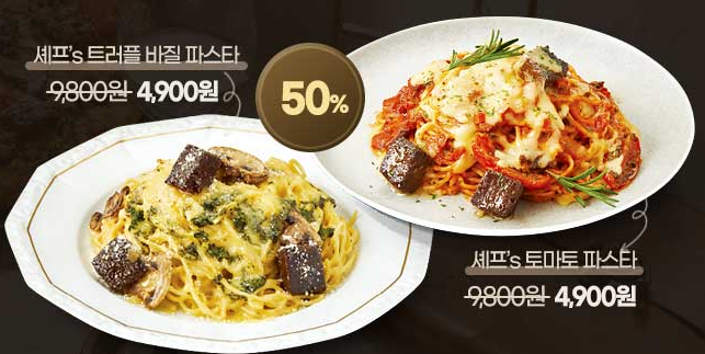 - 스타 셰프 컬렉션 주문 시 사이드 디시 50% 할인 행사입니다.