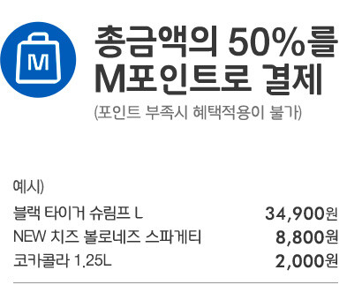 총 주문금액의 50% m포인트 사용 결제(m포인트 부족시 결제할 수 없습니다.)