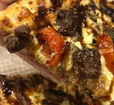 중요한 건 스테이크인데요 큼직한 게 소스 맛과 잘 어울린 듯, 피자와 스테이크 조합이