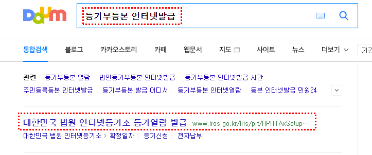 먼저 다음 검색창에서 등기부등본 인터넷발급 검색하세요.