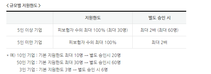 예를 들면 기준 근로자수가 20명 이면 기업체에서는 20명까지 지원 신청하실 수 있으며