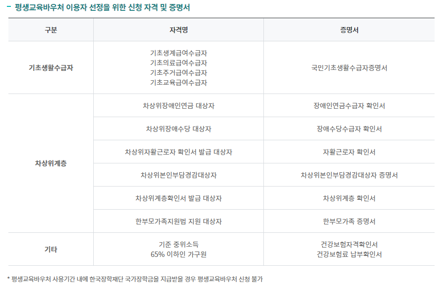 단 평생교육바우처 사용기간 동안 한국장학재단 국가장학금을 받는 경우 신청이 불가합니다.^^