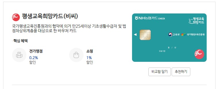 평생교육 바우처에 선정된 분들은 평생교육 희망카드(NH농협 체크카드) 발급을 받으셔야 합니다.