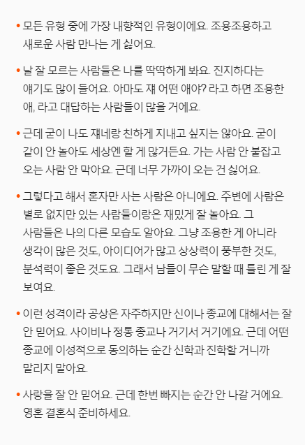 저랑 100% 같은 spti 성격은 아니고 어떤 경향만