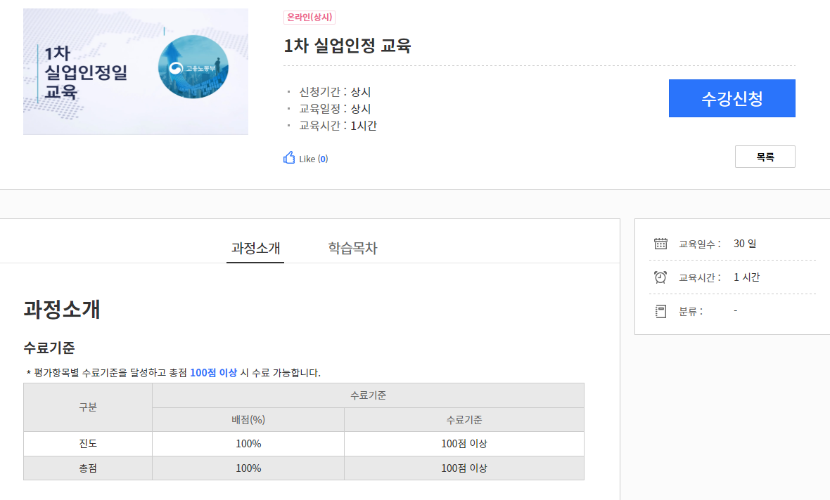 인터넷 온라인 취업특강을 시청하면 실업급여 구직활동을 인정해주더라고요.
