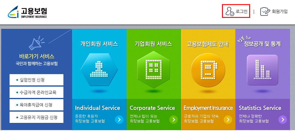 기업회원 클릭 (사업장 관리번호), 기업회원 공동 인증서 로그인.