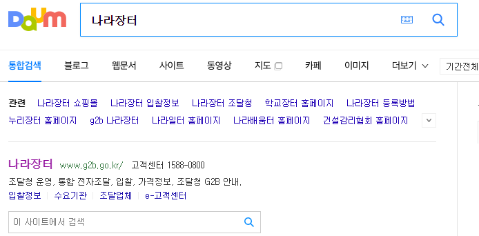 포털 사이트 다음 및 네이버에서 나라장터 검색